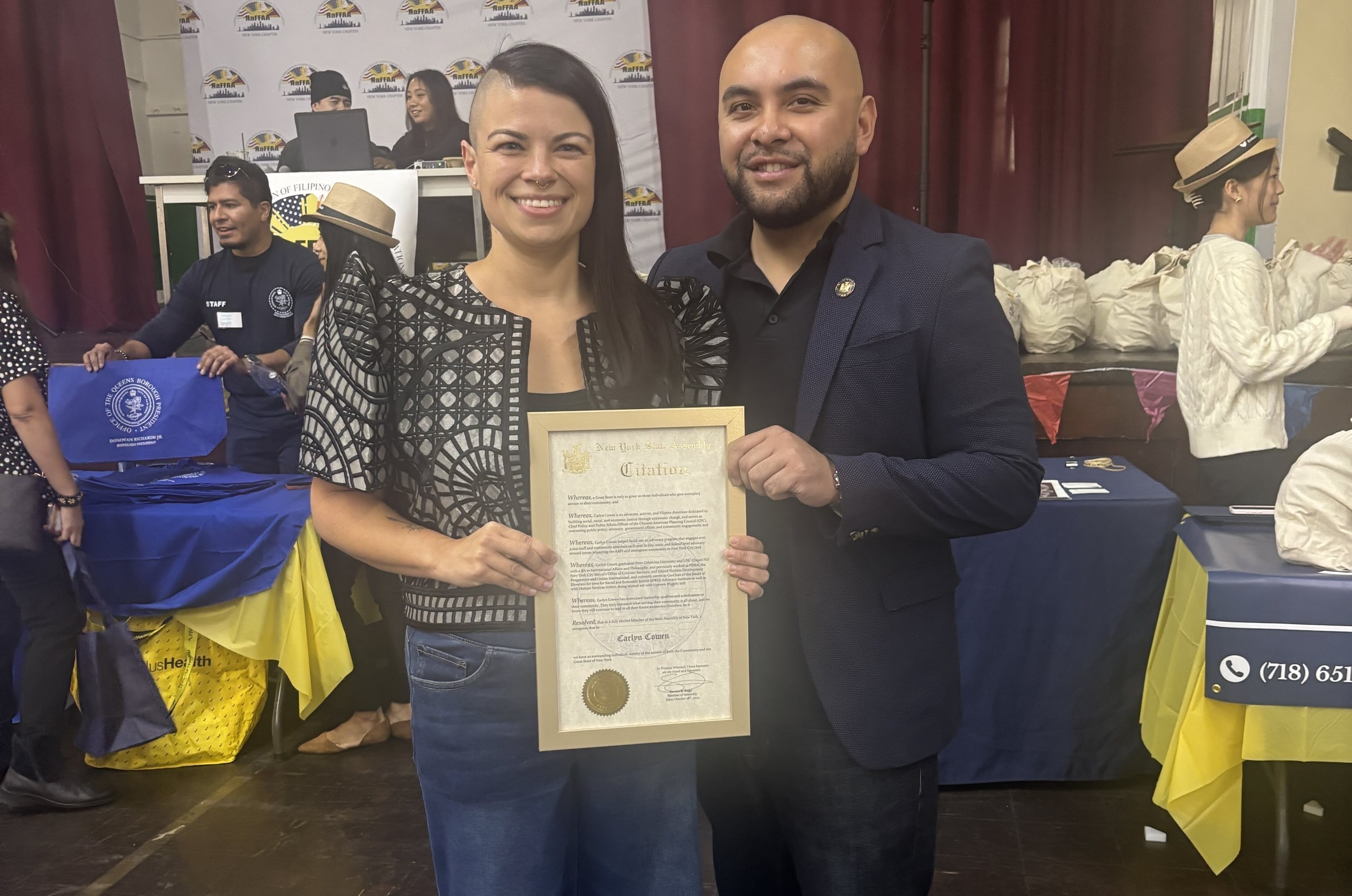 On October 18th, Carlyn Cowen, CPC's Chief Policy and Public Affairs Officer, was recognized for her impactful policy and advocacy work at the 3rd Annual Filipino American History Month Celebration and Resource Fair in Elmhurst. She was celebrated for advancing health care access, securing essential human services funding, and championing social justice. These essential efforts have benefited communities across New York City. The honor was presented jointly by the Office of Assemblymember Steven Raga, the Office of Queens Borough President Donovan Richards, the National Federation of Filipino American Associations, and the Filipino American National Historical Society of Metro New York.