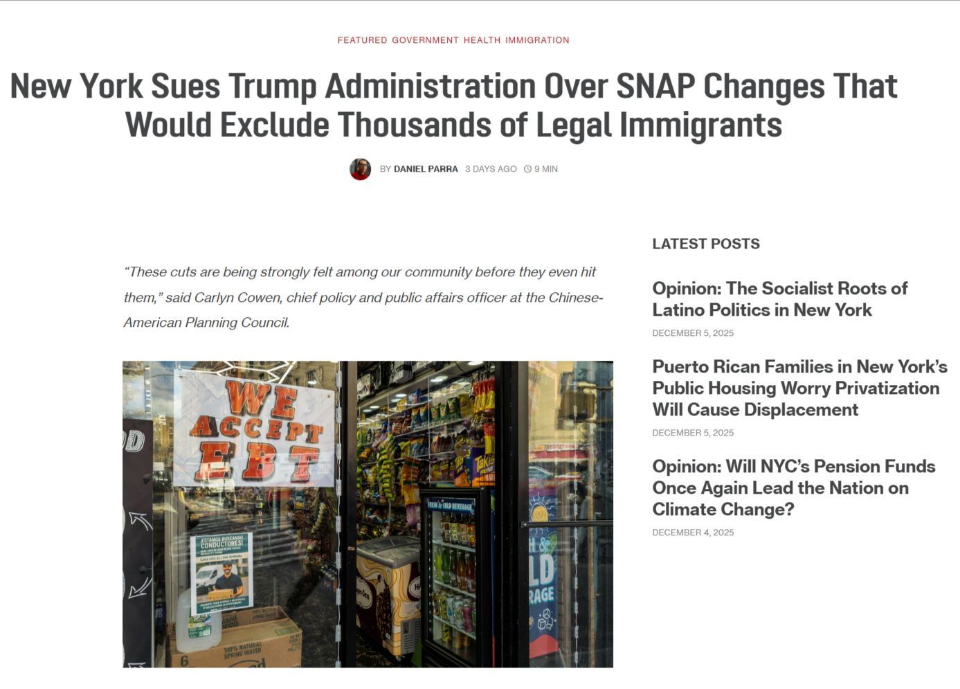 On December 2nd, City Limits published an article detailing a federal rule change that would exclude thousands of legally present immigrants from the SNAP program. In the article, CPC’s Chief Policy and Public Affairs Officer, Carlyn Cowen, highlighted the anxiety the proposed changes are already generating within the community. She emphasized that this fear is triggering mental health crises, with families terrified they will be unable to feed their children.
