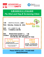 CPC Brooklyn Community Services in partnership with SUNY Downstate Medical Center will host a Flu Shot and Hepatitis B Screening Clinic for all community members. With the Flu season fast approaching, CPC BCS and our partners from SUNY Downstate will be offering free flu shots to all community members. (All children under the age of 18 must have parental consent) Flu shots provide vital immunization for our community members as the flu virus is becoming increasingly more dangerous. Medical professionals highly encourage young children and older adults to get an annual flu shot.