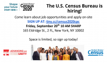 To learn more about available positions at the Census, please attend CPC's upcoming Open House. The event will be on Friday, September 20 at 10 AM SHARP. We are located at 165 Eldridge St., 2 FL, New York, NY 10002.