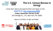 To learn more about available positions at the Census, please attend CPC's upcoming Open House. The event will be on Friday, November 15 at 10 AM SHARP. We are located at 165 Eldridge St., 2 FL, New York, NY 10002.