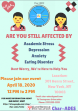 - “Stress Awareness in AAPI Youth in the Lower East Side of NYC,” which aimed to “promote the performance and well being of our community by educating them about how academic stress can lead to anxiety, depression, and eating disorders.”