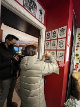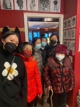 On the occasion of his publication, "Some Chinatown Portrait," David Zheng invited the seniors of Hong Ning Housing to showcase some of their artwork alongside his photographs. Emily Yang, Hong Ning's volunteer Art Instructor, had been working with the seniors for almost three weeks to create the flower block prints that are currently on view at Yu and Me Bookstore in Chinatown. On March 3rd, the seniors visited the Bookstore and were able to see their work proudly on display!
