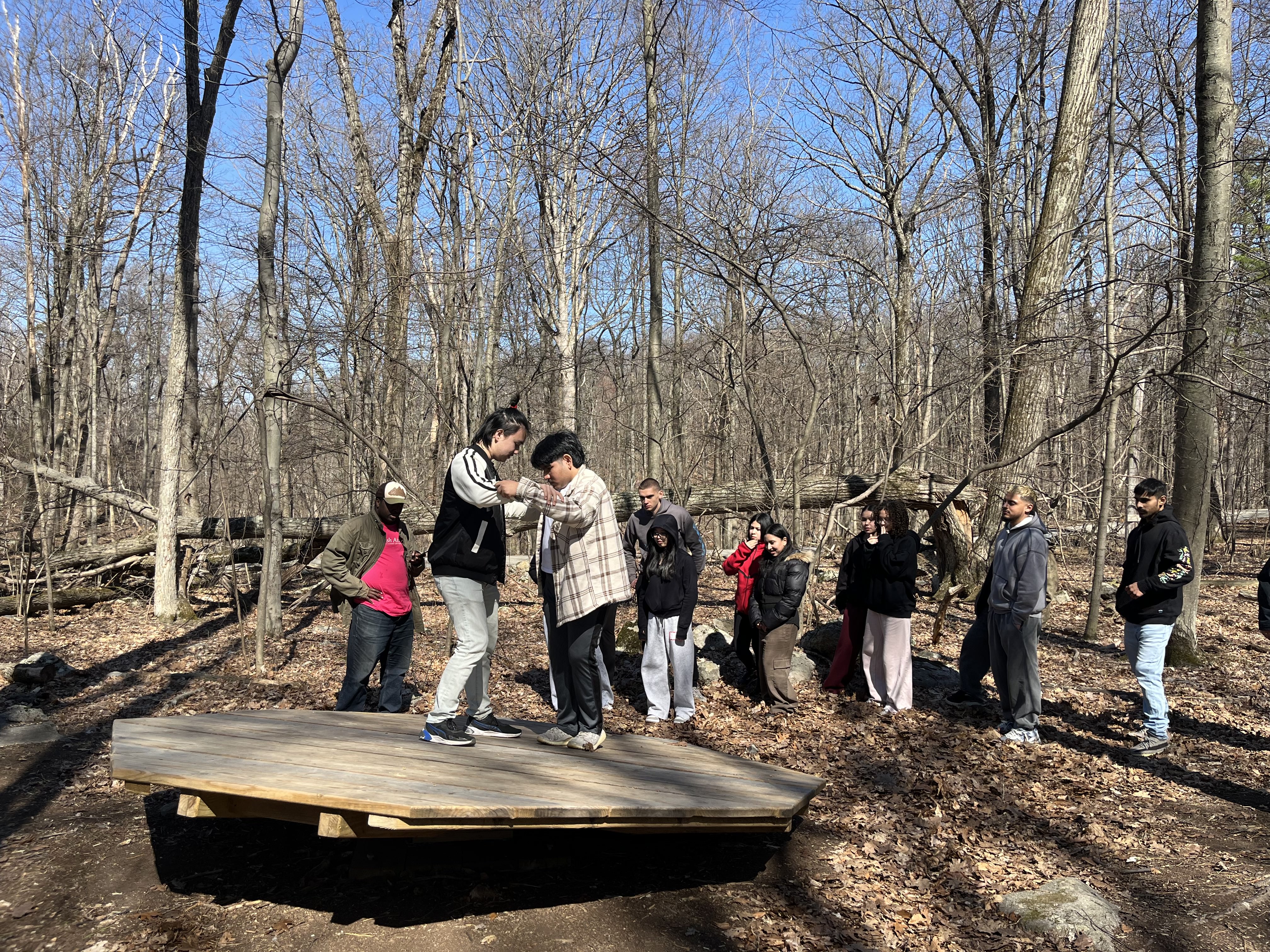 On April 9th through 10th, CPC Project Gateway staff and students visited Camp Mariah in upstate New York for a Spring Break retreat. More than 30 high school juniors, seniors, and college students gathered to connect through a variety of team building activities. The group shared meaningful conversations about college life, participated in hands-on activities including building chairs, houses, and cars using poles, and started their morning with a group jog. Students also enjoyed a bonfire, made s'mores, and watched the stars together. The retreat gave young people a chance to recharge, share experiences, and grow closer outside the classroom.