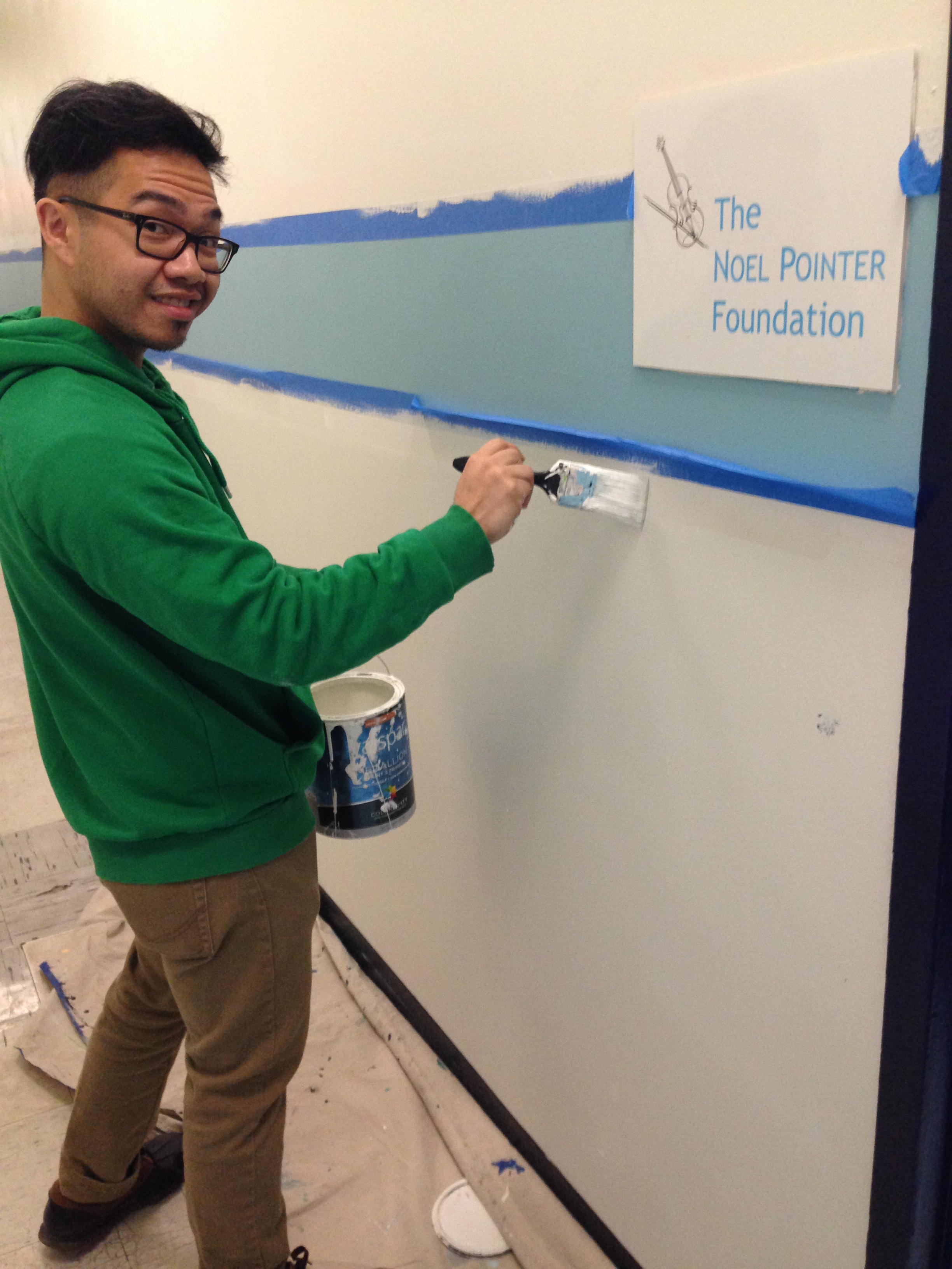 A Brush with Kindness seeks to revitalize cummunity spaces such as senior centers, day care centers, & parks. On this day, the students helped to put the finishing touches on the murals at the Noel Pointer Music Foundation, a not-for-profit that enriches the lives of children by developing string music education programs for under-served communities in New York City.